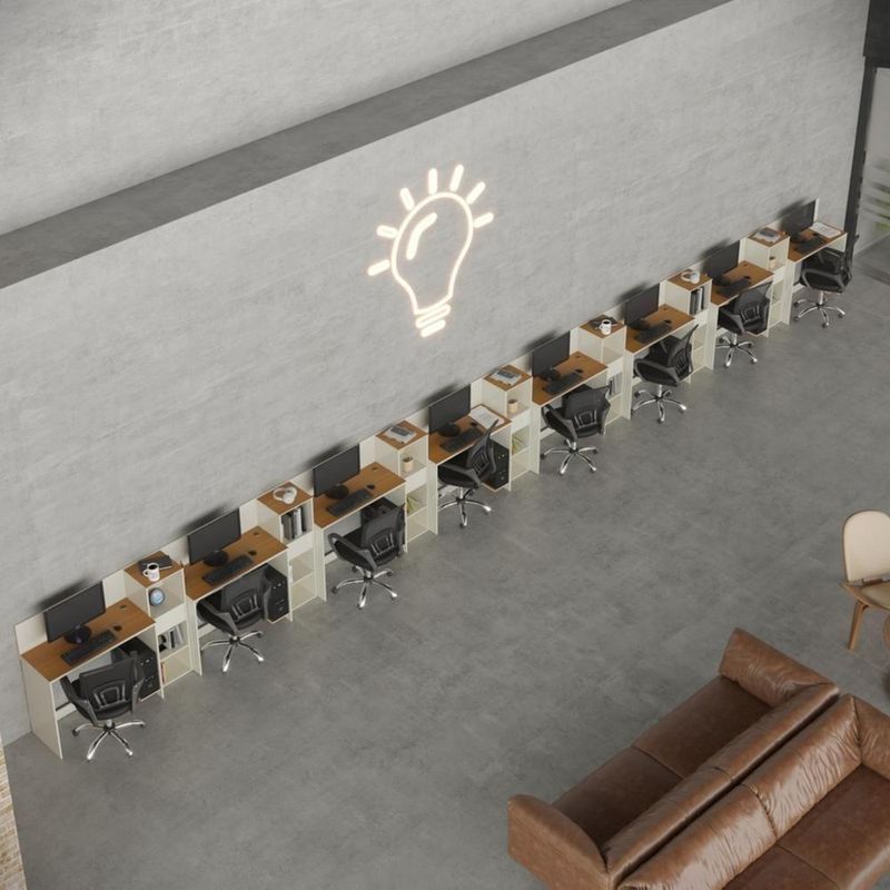 Conjunto De Escritório Tech 7 Livreiro E 8 Mesas 90cm - Vian - Off White E Cedro Off White E Cedro