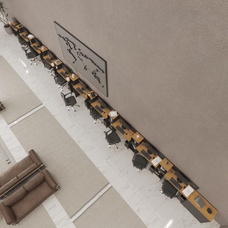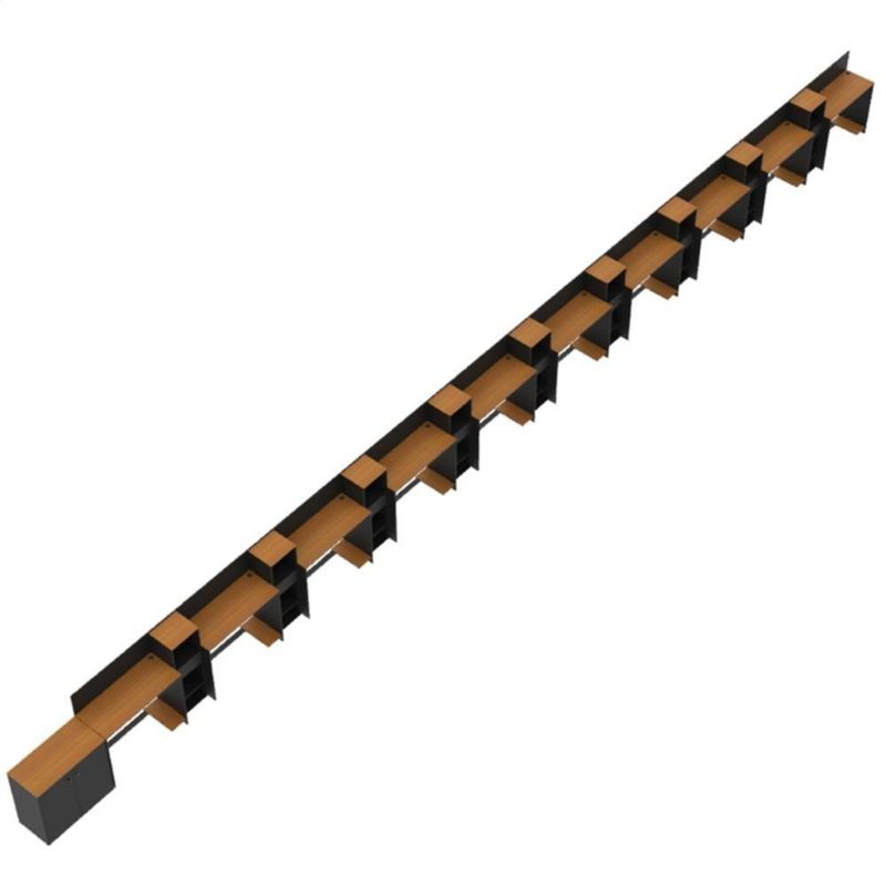 Conjunto De Escritório Tech 9 Livreiro 1 Buffet E 10 Mesas 9 - Preto E Cedro Preto E Cedro