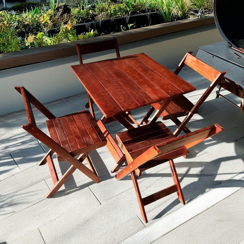Conjunto De Mesa Para Bar 4 Cadeiras Dobráveis Em Madeira Imbuia