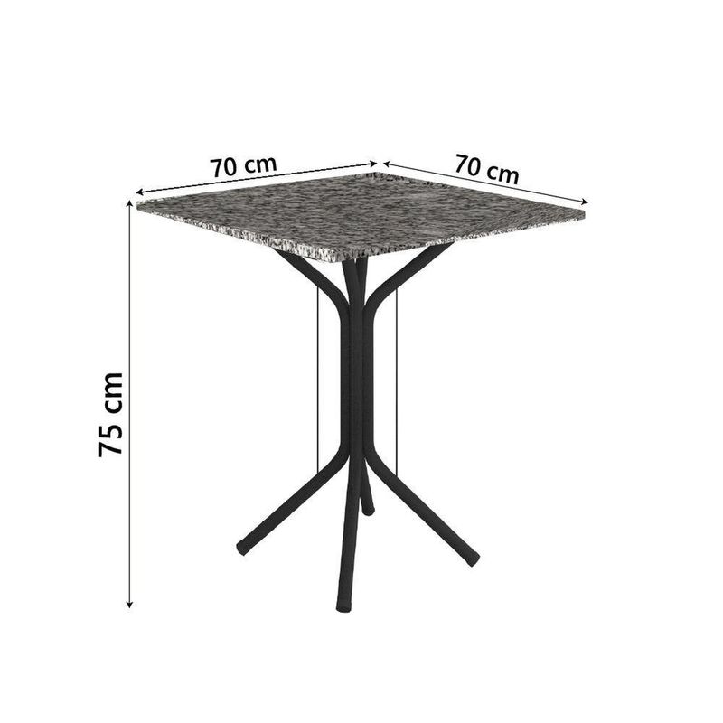 Não realizamos montagem, desmontagem, por escadas ou içamento. É responsabilidade do cliente verificar se as dimensões do produto são compatíveis com portas, elevadores e corredores. Evite imprevistos: confira todos os detalhes antes de concluir sua compra. MEDIDAS MESA:: A = 75 cm L = 70 cm P = 70 cm | MEDIDAS CADEIRAS:: A = 92 cm L = 34 cm P = 41 cm | PESO MESA:: 27,3 Kg (Base + Tampo) | PESO CADEIRA:: 2,36 Kg cada | PESO SUPORTADO PELA MESA:: 25 Kg distribuídos | PESO SUPORTADO POR CADEIRA (cada):: 120 Kg | MODELO:: Conjunto De Mesa Sala de Jantar Com 4 Cadeiras Leia Tubular Granito | MARCA:: Artefamol | ESTRUTURA:: Base e Cadeira de Aço | MATERIAL DO TAMPO:: Granito | ACABAMENTO:: Liso | TECIDO DA CADEIRA:: Sintético | REVESTIMENTO INTERIOR DA CADEIRA:: Espuma D10 | POSSUI SAPATAS:: Sim | MATERIAIS DA SAPATA:: Plástico | INSTRUÇÕES E CUIDADOS:: Para maior durabilidade, recomendável que a limpeza dos móveis seja feita com pano limpo e levemente umedecido em água e sabão neutro. Em seguida, deverá ser passado um pano limpo e seco. | ITENS INCLUSOS:: 1 Base, 1 Tampo e 4 Cadeiras | GARANTIA:: 3 meses pelo fabricante | AVISO:: Importante sobre a : A é realizada até a portaria ou porta de entrada do indicado, desde que o acesso seja permitido. Para locais com portaria, a será feita no piso térreo. | Altura: 75 | Ambiente recomendado: sala de jantar | Forma: quadrada | Inclui manual de montagem: sim | Material da tampa: granito | Quantidade de caixas de embalagem: 6 | Requer montagem: sim | Cor: Preto