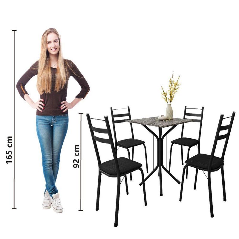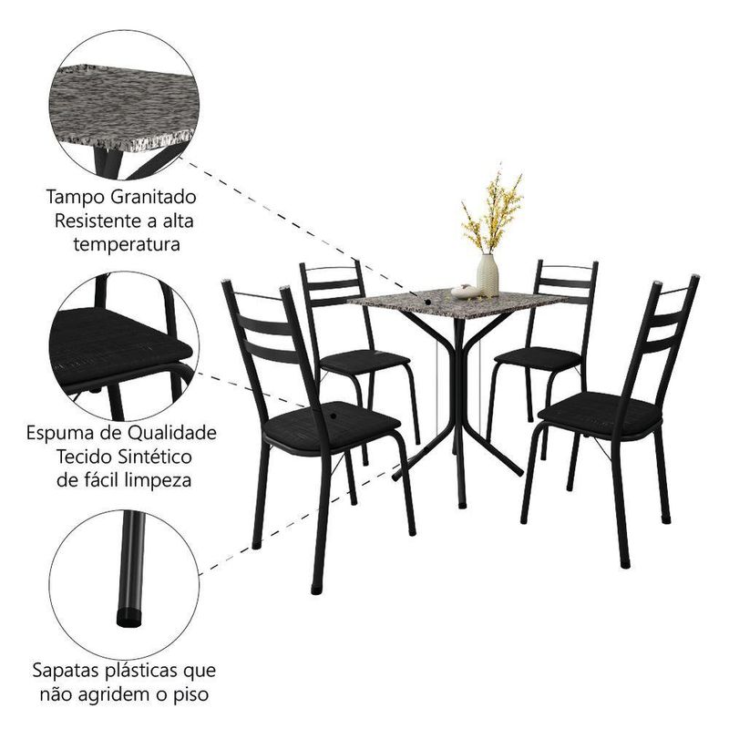 Conjunto De Mesa Sala De Jantar Com 4 Cadeiras Leia Tubular Granito Artefamol Preto