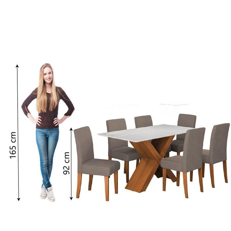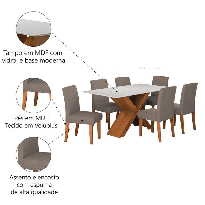 Conjunto De Mesa Sala De Jantar Tampo Com Vidro 1,60m Grécia 6 Cadeiras Trieste Dobuê Madeirado/mascavo