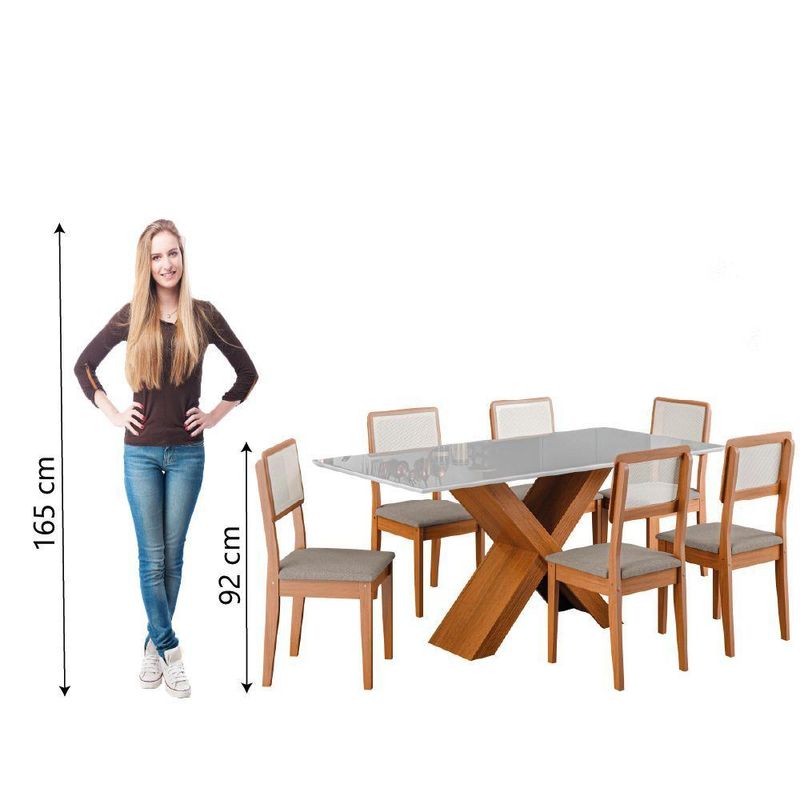 Conjunto De Mesa Sala De Jantar Tampo Com Vidro 1,80m Grécia 6 Cadeiras Santiago Dobuê Madeirado/off White