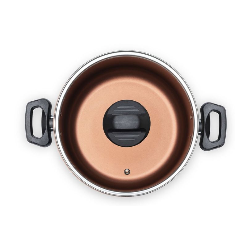 O alumínio da estrutura das panelas aquece os alimentos de maneira uniforme e acelera o processo de cocção, possibilitando que você fique menos tempo na cozinha e ainda economize gás e eletricidade. A linha é produzida no Brasil com energia proveniente de fonte 100% renovável.