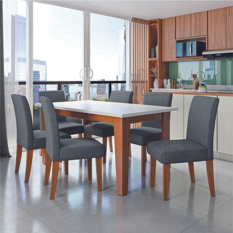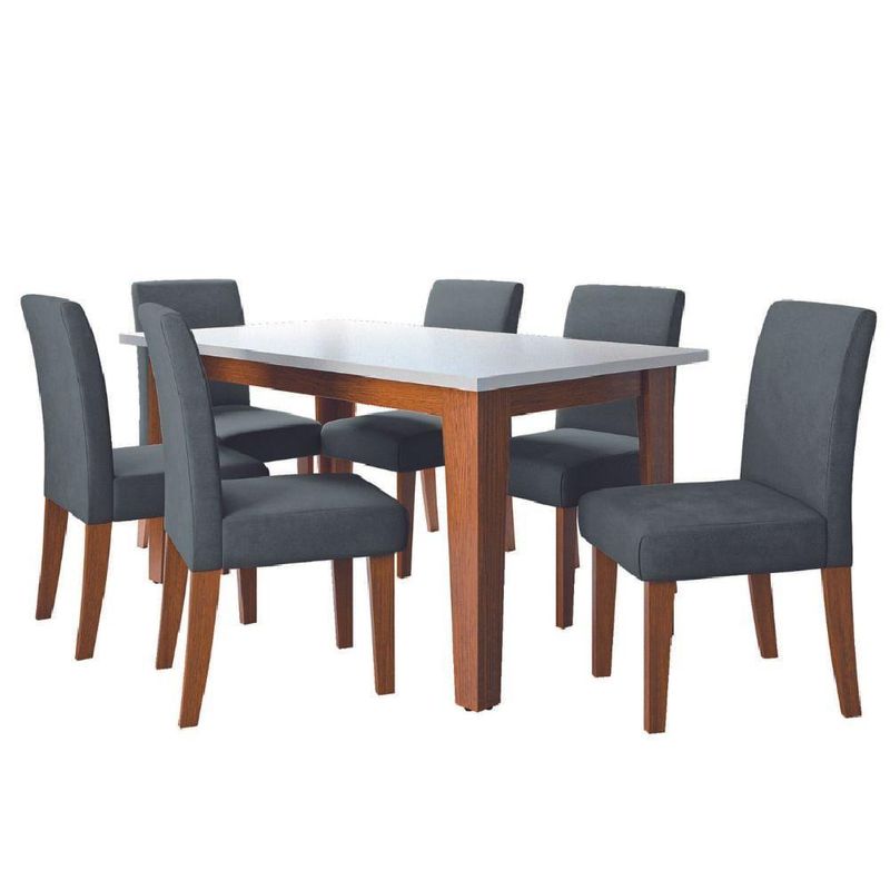 Conjunto de Sala de Jantar Mesa Miami 1,60m com 6 Cadeiras Trieste Dobuê Madeirado/Grafite