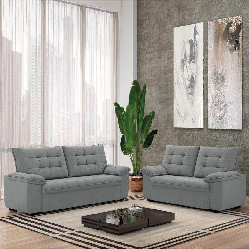 O Conjunto de Sofá 2 e 3 Lugares Bertioga, é a escolha perfeita para acomodar amigos e familiares, seu design sofisticado combina com qualquer ambiente. Produzido com materiais de ótima qualidade, revestido em tecido veludo de toque macio e braços almofadados que garantem mais aconchego. As almofadas são soltas e o produto tem percintas elásticas, garantindo apoio, elasticidade e conforto. Este modelo é ideal para que você possa aproveitar seus momentos de lazer e descanso, além de ser um produto de fácil montagem.