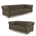 Transforme seu espaço com o Conjunto de Sofás Stanford Estilo Chesterfield, uma combinação que exala sofisticação e conforto em um design clássico e luxuoso. Ideal para criar um ambiente refinado e acolhedor, este conjunto é perfeito para quem valoriza a elegância e a qualidade superior em grande estilo. Cada sofá do conjunto é construído com madeira reflorestada de eucalipto, garantindo uma base robusta e sustentável que promove durabilidade e respeito ao meio ambiente. O encosto e os braços são preenchidos com fibra siliconada, proporcionando um toque macio e aconchegante. O assento é equipado com cinta elástica italiana tensionada e almofada ensacada de espuma D-26, oferecendo um suporte firme e confortável para uma experiência de uso superior. O revestimento em couro de alta qualidade traz um aspecto sofisticado e elegante, enquanto os pés torneados fixos em madeira maciça adicionam um charme refinado e garantem estabilidade e durabilidade. Com a robustez necessária para suportar até 240 kg por sofá, este conjunto é ideal para uso diário e proporciona uma experiência de sentar-se confortável e segura. O Conjunto de Sofás Stanford Estilo Chesterfield é a escolha perfeita para quem deseja um toque de classe e conforto em qualquer ambiente. Seu design atemporal e detalhes sofisticados fazem deste conjunto um destaque em qualquer sala de estar, escritório ou área de recepção.