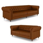 Transforme seu espaço com o Conjunto de Sofás Stanford Estilo Chesterfield, uma combinação que exala sofisticação e conforto em um design clássico e luxuoso. Ideal para criar um ambiente refinado e acolhedor, este conjunto é perfeito para quem valoriza a elegância e a qualidade superior em grande estilo.Cada sofá do conjunto é construído com madeira reflorestada de eucalipto, garantindo uma base robusta e sustentável que promove durabilidade e respeito ao meio ambiente.O encosto e os braços são preenchidos com fibra siliconada, proporcionando um toque macio e aconchegante. O assento é equipado com cinta elástica italiana tensionada e almofada ensacada de espuma D-26, oferecendo um suporte firme e confortável para uma experiência de uso superior.O revestimento em couro de alta qualidade traz um aspecto sofisticado e elegante, enquanto os pés torneados fixos em madeira maciça adicionam um charme refinado e garantem estabilidade e durabilidade.Com a robustez necessária para suportar até 240 kg por sofá, este conjunto é ideal para uso diário e proporciona uma experiência de sentar-se confortável e segura.O Conjunto de Sofás Stanford Estilo Chesterfield é a escolha perfeita para quem deseja um toque de classe e conforto em qualquer ambiente. Seu design atemporal e detalhes sofisticados fazem deste conjunto um destaque em qualquer sala de estar, escritório ou área de recepção.