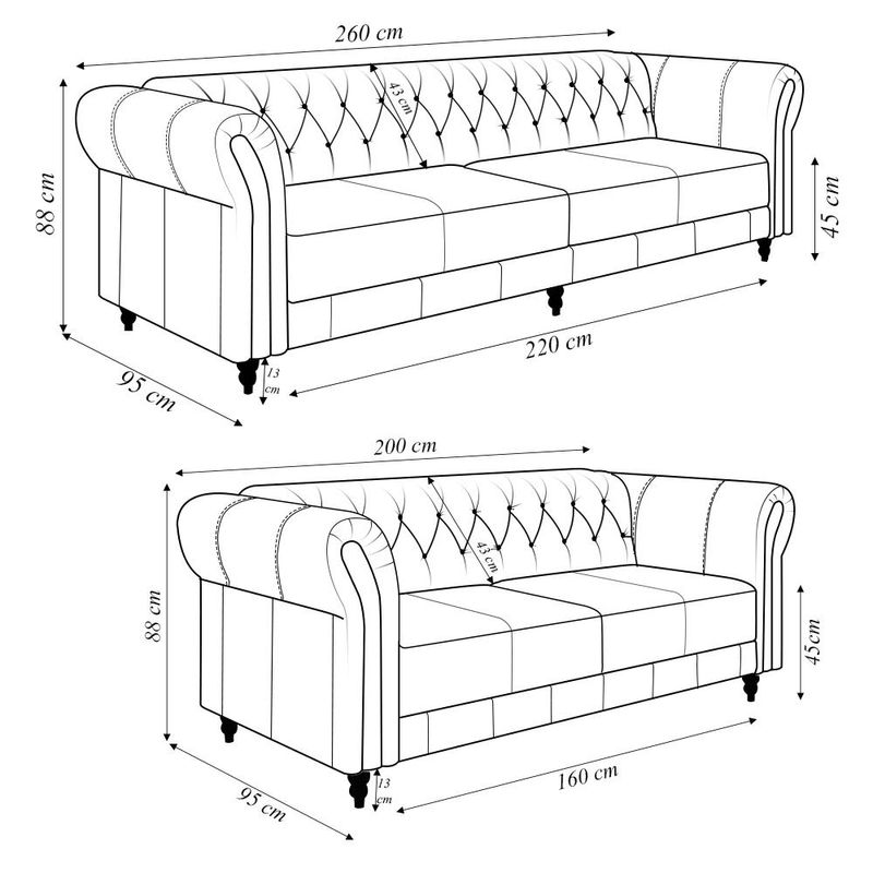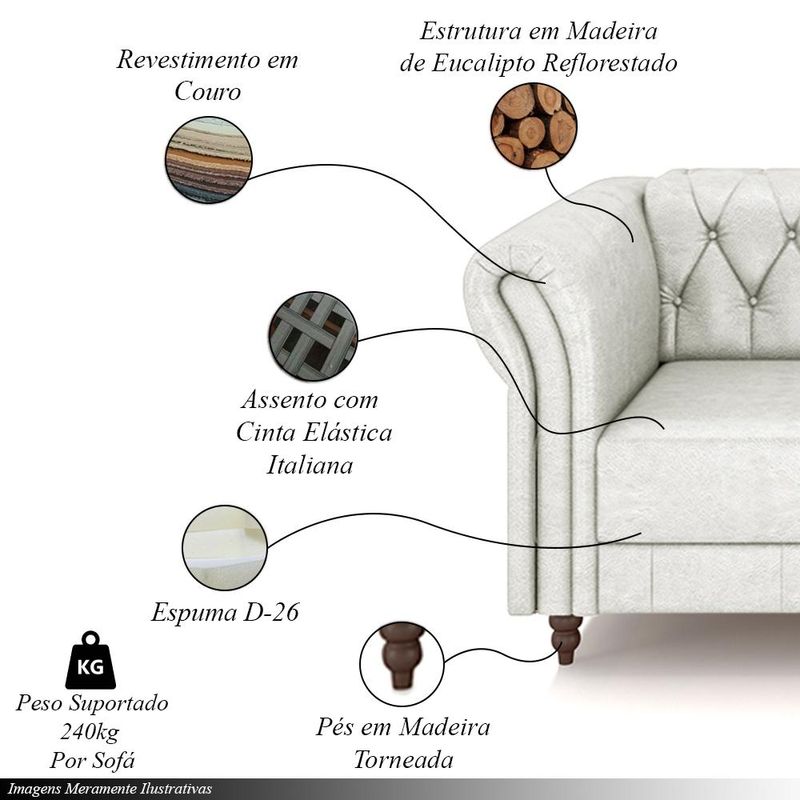 Transforme seu espaço com o Conjunto de Sofás Stanford Estilo Chesterfield, uma combinação que exala sofisticação e conforto em um design clássico e luxuoso. Ideal para criar um ambiente refinado e acolhedor, este conjunto é perfeito para quem valoriza a elegância e a qualidade superior em grande estilo.Cada sofá do conjunto é construído com madeira reflorestada de eucalipto, garantindo uma base robusta e sustentável que promove durabilidade e respeito ao meio ambiente.O encosto e os braços são preenchidos com fibra siliconada, proporcionando um toque macio e aconchegante. O assento é equipado com cinta elástica italiana tensionada e almofada ensacada de espuma D-26, oferecendo um suporte firme e confortável para uma experiência de uso superior.O revestimento em couro de alta qualidade traz um aspecto sofisticado e elegante, enquanto os pés torneados fixos em madeira maciça adicionam um charme refinado e garantem estabilidade e durabilidade.Com a robustez necessária para suportar até 240 kg por sofá, este conjunto é ideal para uso diário e proporciona uma experiência de sentar-se confortável e segura.O Conjunto de Sofás Stanford Estilo Chesterfield é a escolha perfeita para quem deseja um toque de classe e conforto em qualquer ambiente. Seu design atemporal e detalhes sofisticados fazem deste conjunto um destaque em qualquer sala de estar, escritório ou área de recepção.