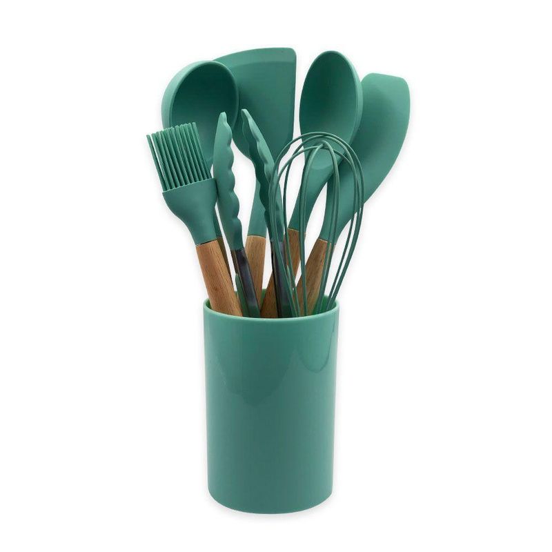 Conjunto De Utensilios Silicone 8 Peças - Verde Escuro
