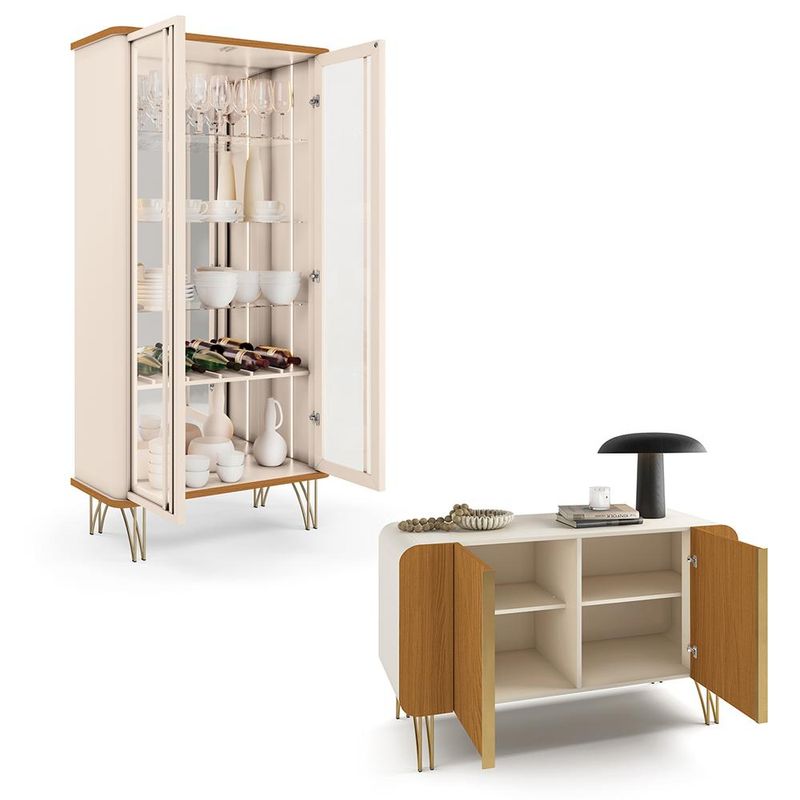 MóveisSala de EstarConjunto Decorativo 1 Cristaleira e 1 Buffet Texas/Bambino Off White/Cinamomo G26 - Gran Belo