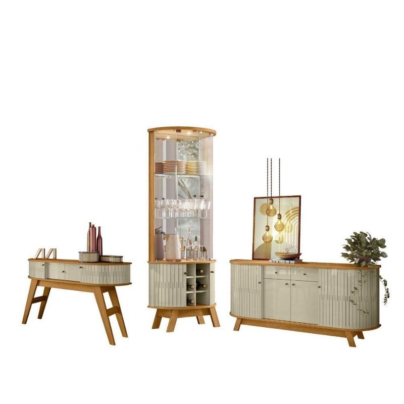 O Conjuto de Aparador, Buffet e Cristaleira irão completar o seu ambiente, ambas possuem design único e inovador que irão deixar qualquer espaço ainda melhor. Proporcionando um ambiente elegante e organizado para sua casa.Feito 100% em MDP.
