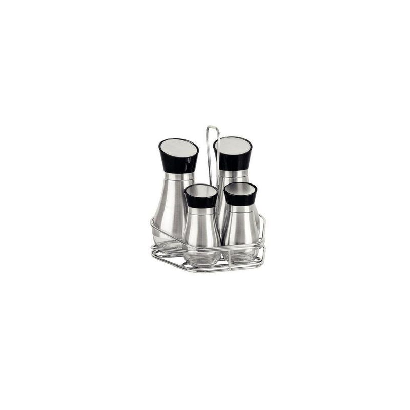 Conjunto Galheteiro Tramontina RealceTempere seus pratos preferidos e deixe a composição da sua mesa muito mais prática e cheia de estilo, com o Conjunto Galheteiro Tramontina Realce. Perfeito para colocar aqueles condimentos essenciais em todo prato, ele proporciona maior beleza e qualidade para suas refeições. São quatro galheteiros projetados especialmente para azeite, vinagre, sal e pimenta, todos desenvolvidos em vidro com revestimento em aço inox e tampas em ABS de alta vedação em silicone, que garantem não apenas a sua durabilidade, mas também a de seu conteúdo. Seu suporte conta com estrutura aramada em aço carbono cromado, que adiciona um toque de modernidade, combinando perfeitamente com qualquer estilo de decoração. Com este conjunto completo, ficou mais simples do que nunca ter seus condimentos favoritos à mão durante as refeições, tornando sua rotina à mesa agradável e satisfatória!Altamente durável, mantém as características originais, preservando a beleza, a higiene e a durabilidade do material. Design moderno.Beleza e praticidade em seu design. Ideal para ir à mesa. Tampa giratória em ABS, com bico dosador e sistema corta-gotas. Recipiente em vidro revestido em aço inox.Pode ser lavado na máquina de lavar louças.Cuidados com o produtoUse apenas sabão ou detergente e uma esponja macia. Outros tipos de produto como palha de aço, poderão riscar ou prejudicar o brilho das peças. Enxágue cada item a fim de remover totalmente os resíduos dos produtos de limpeza, que, por serem abrasivos, podem danificar o inox. Sempre que possível, use água quente, pois renova o brilho das peças. Após a lavagem, enxugue imediatamente as peças, caso contrário, as substâncias químicas da água (cloro) poderão causar manchas. Evite atrito entre as peças durante o processo de lavagem e no armazenamento, para mantê-las sem riscos. Evite o contato do produto com superfícies quentes, pois elas provocam a descoloração do material. Não guarde as peças em locais úmidos. A umidade também provoca manchas.Cuidado com a vedação do galheteiro para azeite/vinagre: ao lavar o recipiente, evite perder o anel de vedação e certifique-se de montar a tampa corretamente para evitar vazamentos.Os materiais utilizados são adequados para lavagem em máquina de lavar louça, entretanto, é necessário ter cuidado com as vedações de silicone presentes nas tampas dos galheteiros, evitando a perda dessas peças durante a lavagem.Garantia90 dias de garantia legal para vícios ou defeitos de fabricação. - -