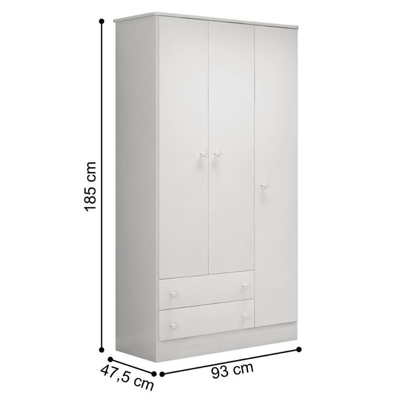 Conjunto completo de quarto infantil é perfeito para você que procura praticidade e segurança na hora de montar o quarto do seu bebêA cômoda é feita em MDP 15/12mm, possuindo quatro gavetas com corrediças metálicas.O Guarda Roupa é feito em MDP, contém três portas e duas gavetas com corrediças metálicas.O berço é feito em MDP 15mm. Não acompanha colchão (comporta colchão de 10x130x60).Acompanha kit de rodízios para facilitar o manuseio do produtoInformações do Berço:Altura: 97,8 cmLargura: 68 cmComprimento: 133,5 cmInformações Adicionais:Material: MDP 15 mmPés em MDF de 25mmCor: BrancoEstrado Regulável em Quantas Alturas:3Peso suportado: 40 KgAcompanha colchão: Não1 Kit de rodízios 2 com trava e 2 semcomporta colchão de 10x130x60Dimensões do Guarda Roupa:Altura: 185 cmLargura: 93 cmProfundidade: 47,5 cmInformações do Guarda Roupa:Cor: BrancoGavetas: Sim (2) Corrediças Metálicas.Cabideiro: Sim (1)Prateleiras: Sim (6)Puxadores: Sim (5) Estrela Poliestireno.Portas: Sim (3)Material: MDPInformações da CômodaAltura: 79 cmLargura: 93 cmProfundidade: 45 cmInformações da Cômoda:Cor: Branco/BrancoPossui Gavetas: Sim (4)corrediças metálicasPorta: Sim (1)Prateleira:Sim (1)Material: MDP 12/15mmItens Inclusos:1 Cômoda1 Guarda Roupa1 BerçoManual de MontagemKit completo para montagem e manual de instruçõesGarantia:3 meses contra defeito de fabricaçãoInformações Adicionais:- Fotos meramente ilustrativas do produto no ambiente.- Os objetos que ambientam as fotos não acompanham o produto;- Verificar descrição e tamanho do produto antes da compra.- Avaliar a mercadoria no ato do recebimento e recuse em caso de divergência ou avarias.- Mantenha as informações de contato e endereço de entrega atualizados para entrarmos em contato caso necessário.- Limpar com flanela ou pano macio seco, não utilizar produtos abrasivos, desengordurantes, álcool ou solvente. Não expor o produto diretamente à luz solar e à umidade.* Sugerimos a contratação de um montador profissional para a montagem do produto. Não nos responsabilizamos por avarias causadas no ato da montagem.* Não nos responsabilizamos pela montagem e desmontagem do produto no ato da entrega e devolução, assim como os custos gerados nestas situações.* A transportadora entregará o produto no andar térreo do endereço de entrega.* Não nos responsabilizamos por subir escadas, corredores e elevadores ou transporte por guincho em apartamento Color: Branco | Length: 185 | Fabricante: Mobiliar Home Shop | Weight: 114.3 | Largura Produto com Embalagem (cm): 74.5 | Altura do Produto com Embalagem (cm): 48.1 | Material para Filtro: MDP | Width: 74 | Height: 48 | Comprimento Produto com Embalagem (cm): 185.9 | Peso Produto Com Embalagem (Kg): 114.3 | Tipo de Cama/Cabeceira: Padrão | MAX_WEIGHT_SUPPORTED_BY_BED: 000 | Num. Volumes: 3 | Acompanha Colchão: Sem Colchão | Modelo: Aurora | REQUIRES_ASSEMBLY: Sim