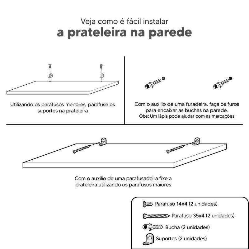 Produto vai desmontado, a montagem é simples e pode ser feita usando uma chave de fenda e a fixação na parede necessita furadeira, ficando a cargo do cliente apenas a montagem e instalação do produto.