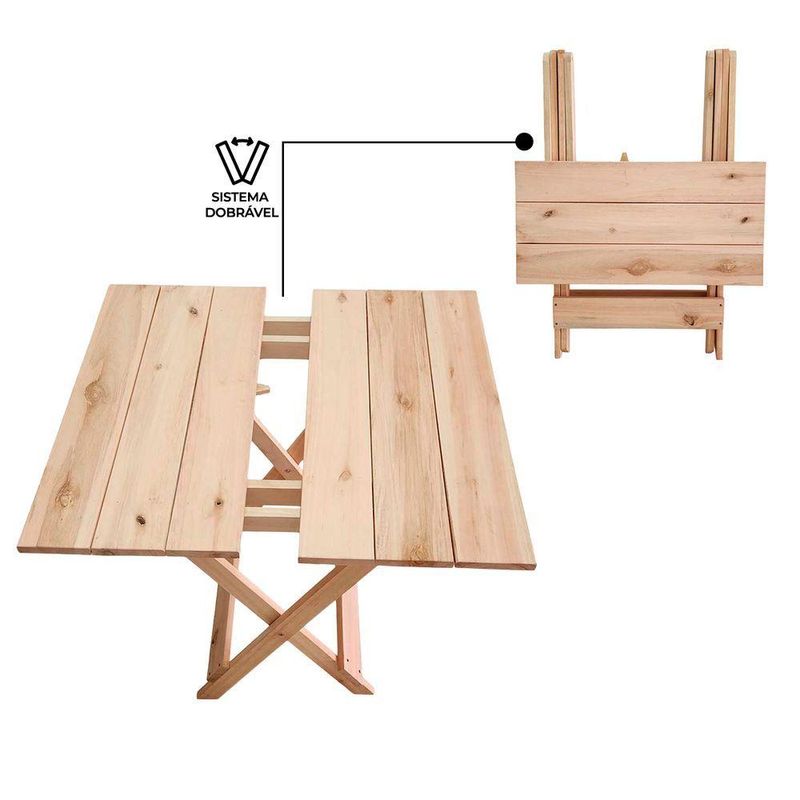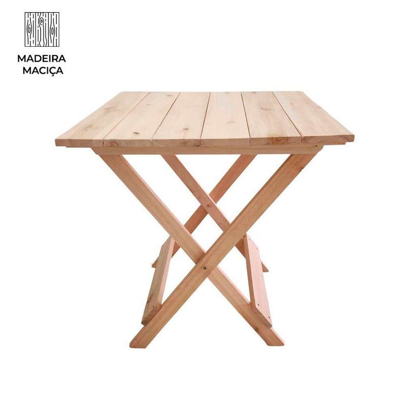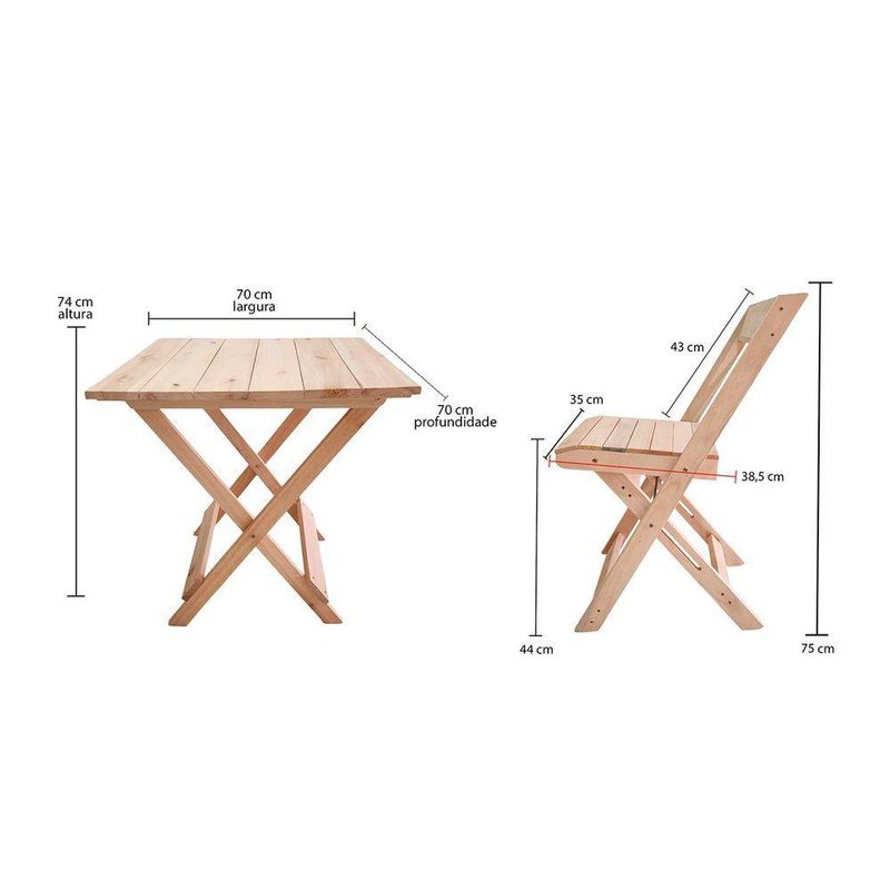 Kit Mesa com 2 Cadeiras Dobráveis em Pinus NaturalTransforme seu espaço com este kit completo de mesa e 2 cadeiras dobráveis em madeira pinus natural. Ideal para quem busca funcionalidade, charme rústico e economia de espaço, o conjunto é perfeito para ambientes internos e externos, como varandas, áreas gourmet, cozinhas compactas, bares, eventos ou até mesmo camping.O que acompanha: