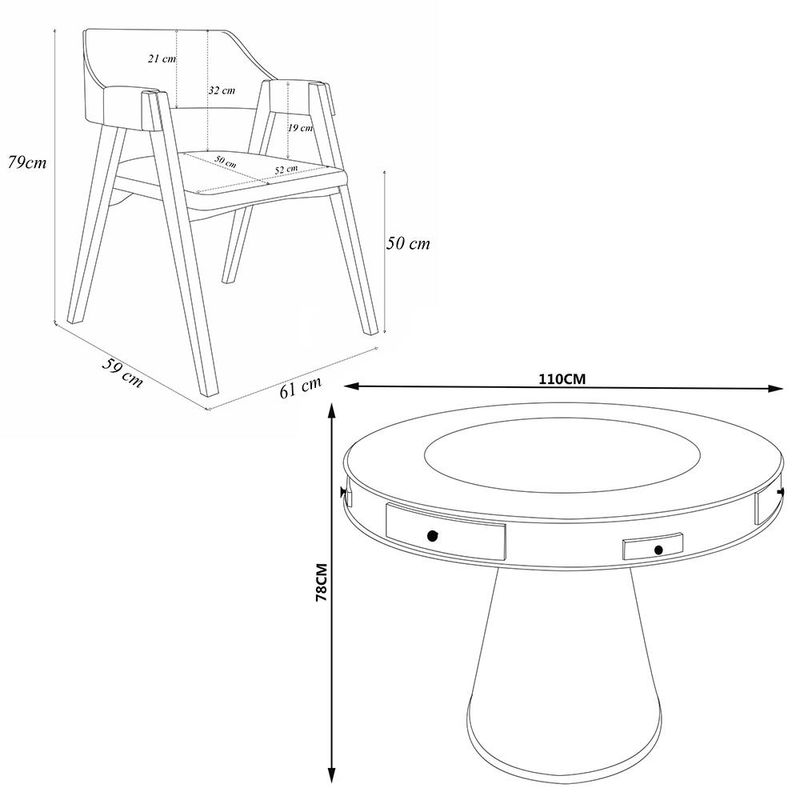 Altura do Assento ao Chão: 50 cm Característica da Mesa: