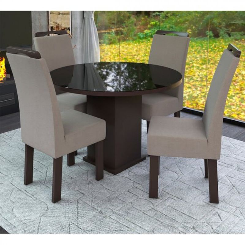 Está em busca da melhor opção em modernidade e beleza? Então conheça o Conjunto Mesa Redonda com 4 Cadeiras New Ametista da Talismã, fabricado em MDF e madeira de Eucalipto, revestimento em MDF revestido e acabamento fosco, além de possuir tampo em MDF 15 mm com vidro de 4 mm. Não perca tempo e garanta já o seu!