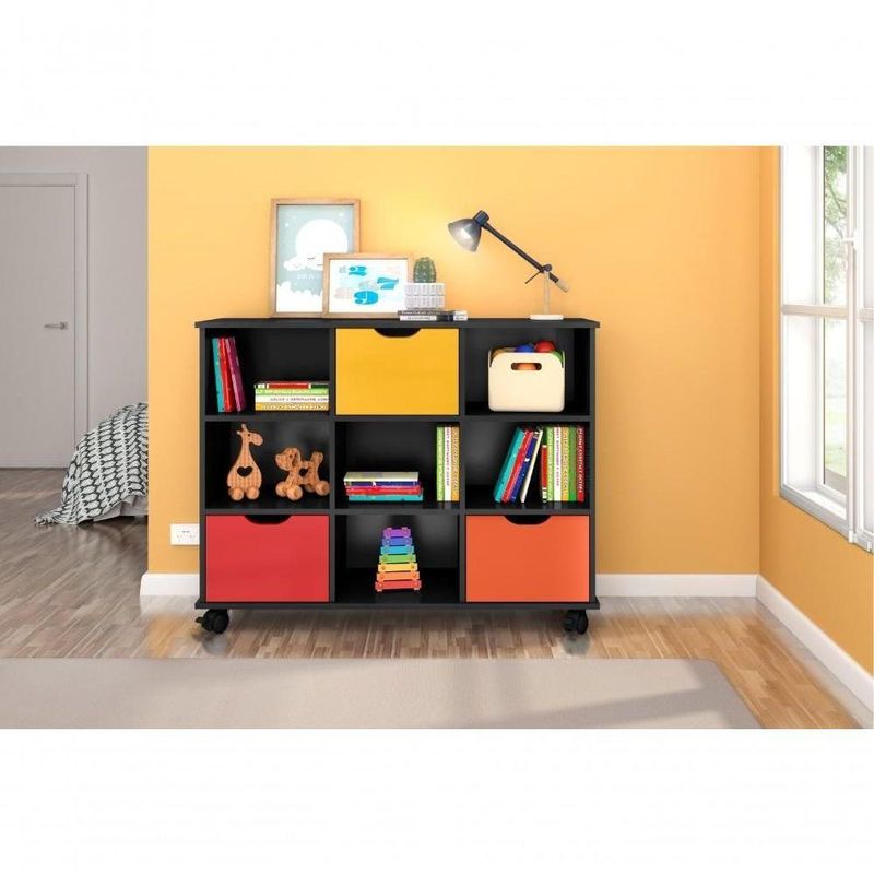Conjunto Nicho Organizador Zuri 9 Espaços Com Rodízios Preto + Kit 3 Gavetas Coloridas