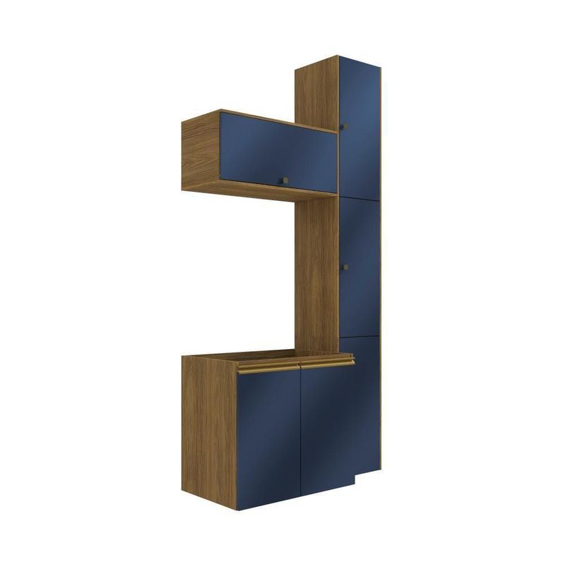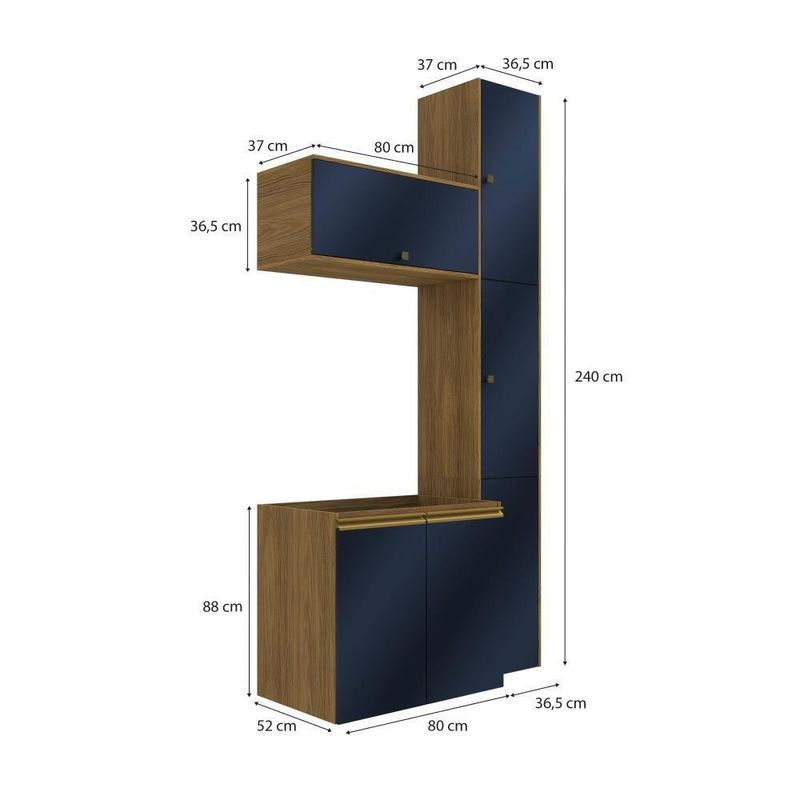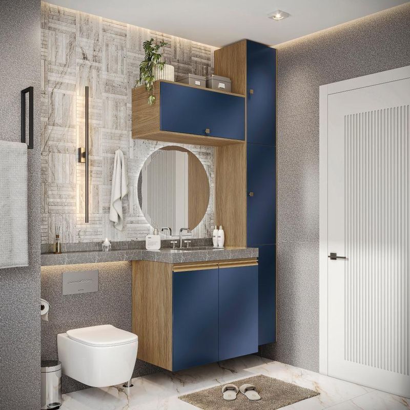 Modernidade e beleza sempre andam juntos, principalmente se aliados a qualidade do 100% MDF da Celeste da Kappesberg. Compacto e funcional, o combo CB1284 conta com cinco peças e amplo espaço para organizar toalhas, cestos e demais itens do seu dia a dia. Ideal para todos os espaços, ele é fácil de adaptar, e com até sete camadas de pintura, a caixaria é na cor nogueira, com acabamento touch, enquanto as frentes são em azul profundo, com acabamento fosco. Uma combinação sofisticada e única, que trará conforto e elegância para todos os ambientes, deixando seu banheiro completo. As portas contam com amortecimento, garantindo um fechamento suave, sem ruído e mais durabilidade, e para completar a beleza dos módulos, os puxadores, metálicos na cor dourada, contam com modelos diferentes no balcão e aéreos, transformando seu projeto com estilo. Aposte na Celeste e monte seu banheiro com toda a beleza e praticidade que a Kappesberg oferece.Informações Importantes:As imagens são meramente ilustrativas, não acompanha acessórios;Pode haver variação de cor de acordo com a calibragem da tela onde o produto está sendo visualizado;Tampo não incluso, é vendido separadamente;Todos nossos móveis são entregues desmontados;A montagem é sempre por conta do cliente (orientamos a contratação de um qualificado, o manual de montagem acompanha o produto);A altura do combo varia conforme a posição fixada na parede;O vídeo do produto pode ser genérico, então atente-se às imagens do anúncio para optar pela cor/modelo. Acabamento: Pintura Fosco / Pintura Touch | Cor: Nogueira/Azul Profundo | Dobradiça: Com Amortecimento / Sem Amortecimento | Garantia: 3 meses para defeito de fabricação | Matéria-prima: MDF | Peso suportado por cada prateleira: 7 kg | Puxadores: Alumínio / Metálicos | Quantidade de portas: 1 / 2 | Quantidade de prateleiras: 1 | Sistema de montagem: Parafuso Philips | Tipo de porta: Bater