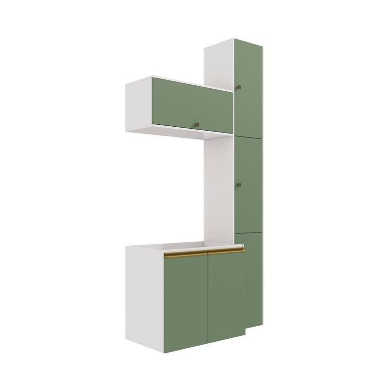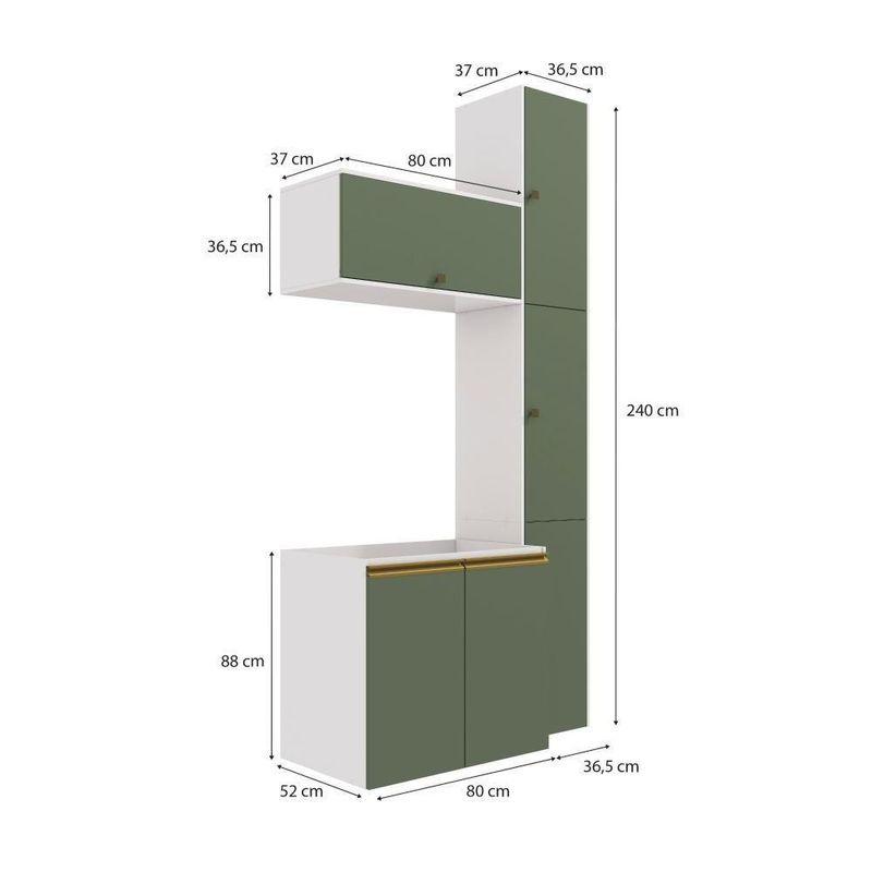 Modernidade e beleza sempre andam juntos, principalmente se aliados a qualidade do 100% MDF da Celeste da Kappesberg. Compacto e funcional, o combo CB1284 conta com cinco peças e amplo espaço para organizar toalhas, cestos e demais itens do seu dia a dia. Ideal para todos os espaços, ele é fácil de adaptar, e com até sete camadas de pintura, a caixaria é na cor branco brilho, enquanto as frentes são na cor verde oliva, com acabamento fosco. A combinação perfeita para todos os ambientes, garantindo sofisticação, estilo e praticidade na limpeza, deixando seu banheiro completo. As portas contam com amortecimento, garantindo um fechamento suave, sem ruído e mais durabilidade, e para completar a beleza dos módulos, os puxadores, metálicos na cor dourada, contam com modelos diferentes no balcão e aéreos, transformando seu projeto com estilo. Aposte na Celeste e monte seu banheiro com toda a beleza e praticidade que a Kappesberg oferece.Informações Importantes:As imagens são meramente ilustrativas, não acompanha acessórios;Pode haver variação de cor de acordo com a calibragem da tela onde o produto está sendo visualizado;Tampo não incluso, é vendido separadamente;Todos nossos móveis são entregues desmontados;A montagem é sempre por conta do cliente (orientamos a contratação de um qualificado, o manual de montagem acompanha o produto);A altura do combo varia conforme a posição fixada na parede;O vídeo do produto pode ser genérico, então atente-se às imagens do anúncio para optar pela cor/modelo. Acabamento: Pintura Brilho / Pintura Fosco | Cor: Branco/Verde Oliva | Dobradiça: Com Amortecimento / Sem Amortecimento | Garantia: 3 meses para defeito de fabricação | Matéria-prima: MDF | Peso suportado por cada prateleira: 7 kg | Puxadores: Alumínio / Metálicos | Quantidade de portas: 1 / 2 | Quantidade de prateleiras: 1 | Sistema de montagem: Parafuso Philips | Tipo de porta: Bater