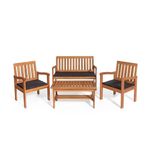 Conjunto para Jardim Robust Tecido PretoO Conjunto Robust é uma ótima escolha para complementar o seu jardim, varanda ou qualquer outra área da sua casa. Fabricado em Madeira Lyptos Grandis garante uma melhor para bem acomodar sua família e amigos nos melhores os. Com o seu acabamento em Stain fornece uma melhor qualidade ao conjunto. Para um melhor conforto e descanso acompanha almofadas com tecido impermeável para serem colocadas sobre o assento de madeira das poltronas.Especificações Técnicas:- Marca: Zanimar