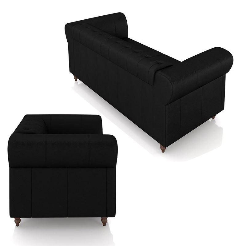MóveisSofásConjunto Sala de Estar 1 Sofá Living 180cm e 1 Poltrona Stanford Chesterfield Pés Madeira Couro Preto Brilho G58 - Gran Belo