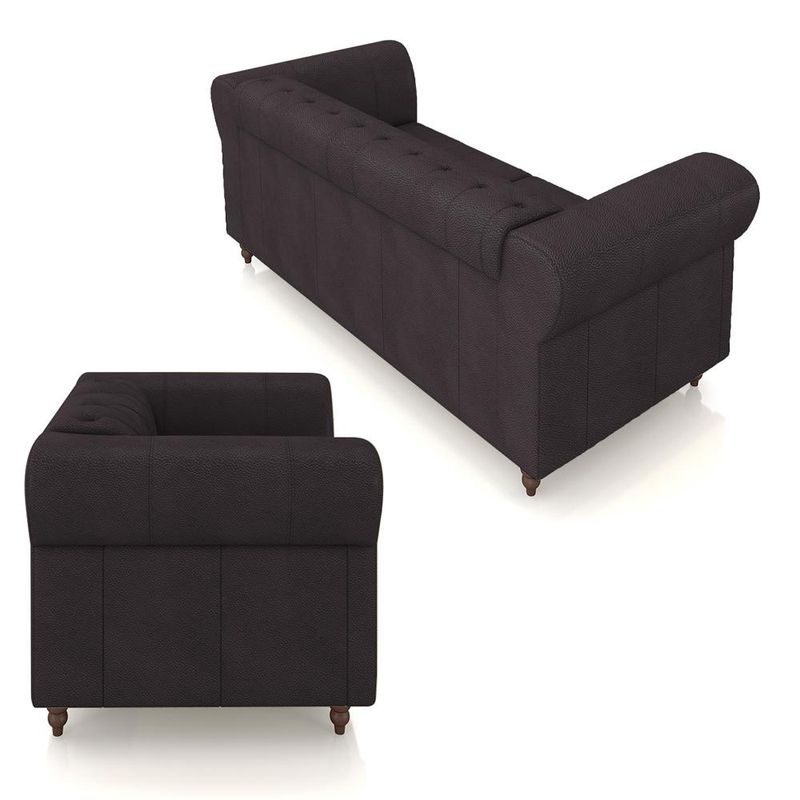 Transforme seu espaço com o Sofá e as Poltronas Stanford Chesterfield, um verdadeiro símbolo de sofisticação e conforto. Este conjunto exclusivo é composto por um sofá majestoso e duas poltronas elegantemente projetadas, todos com uma estrutura robusta de madeira reflorestada de eucalipto, garantindo durabilidade e um compromisso com a sustentabilidade ambiental.O encosto e os braços são preenchidos com fibra siliconada, oferecendo uma experiência de sentar-se macia e aconchegante, ao mesmo tempo que mantém a forma e o suporte ideais. O assento é um verdadeiro destaque, com cinta elástica italiana tensionada e uma almofada ensacada de espuma D-26, proporcionando um conforto firme e bem estruturado. Essa combinação promove um suporte excepcional e durabilidade, sendo perfeita para o uso diário.Os pés torneados fixos, confeccionados em madeira maciça, adicionam um toque de elegância clássica e estabilidade ao conjunto. O revestimento em couro não só confere um visual luxuoso e atemporal, mas também é fácil de manter e resiste ao desgaste, garantindo que seu sofá e poltronas mantenham sua beleza por muitos anos.O Sofá e as Poltronas Stanford Chesterfield são ideais para quem busca um equilíbrio entre estilo sofisticado e conforto inigualável. Seja para uma sala de estar, escritório ou espaço de recepção, este conjunto de móveis agrega um toque de classe e é a escolha perfeita para criar um ambiente acolhedor e refinado.