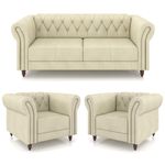MóveisSofásConjunto Sala de Estar 1 Sofá Living 180cm e 2 Poltronas Stanford Chesterfield Pés Madeira Couro Off White G58 - Gran Belo