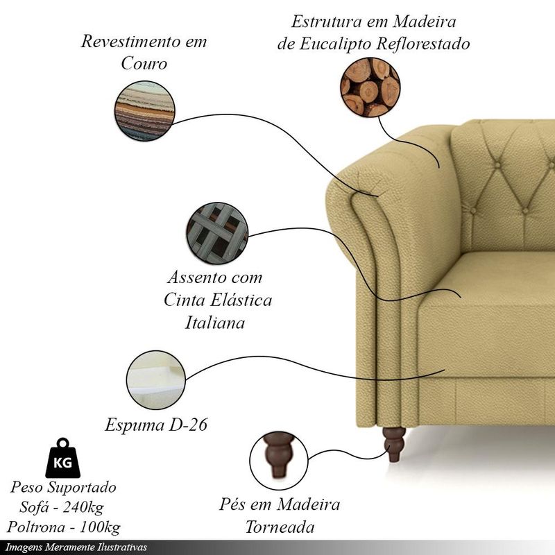 Peso Suportado: 240kg o Sofá e 100kg a Poltrona
