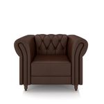 MóveisSofásConjunto Sala de Estar 1 Sofá Living 200cm e 1 Poltrona Stanford Chesterfield Pés Madeira Couro Marrom Brilho G58 - Gran Belo