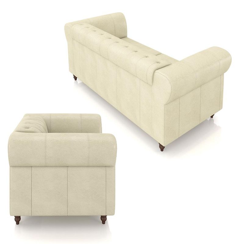 MóveisSofásConjunto Sala de Estar 1 Sofá Living 200cm e 1 Poltrona Stanford Chesterfield Pés Madeira Couro Off White G58 - Gran Belo