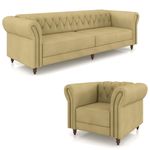 MóveisSofásConjunto Sala de Estar 1 Sofá Living 240cm e 1 Poltrona Stanford Chesterfield Pés Madeira Couro Bege G58 - Gran Belo