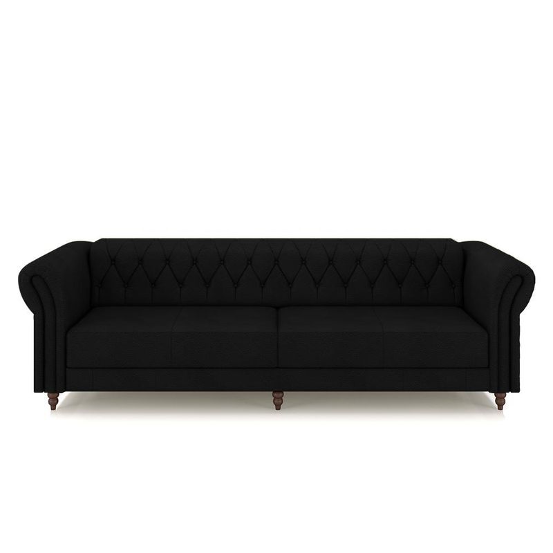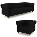 MóveisSofásConjunto Sala de Estar 1 Sofá Living 260cm e 1 Poltrona Stanford Chesterfield Pés Madeira Couro Preto G58 - Gran Belo