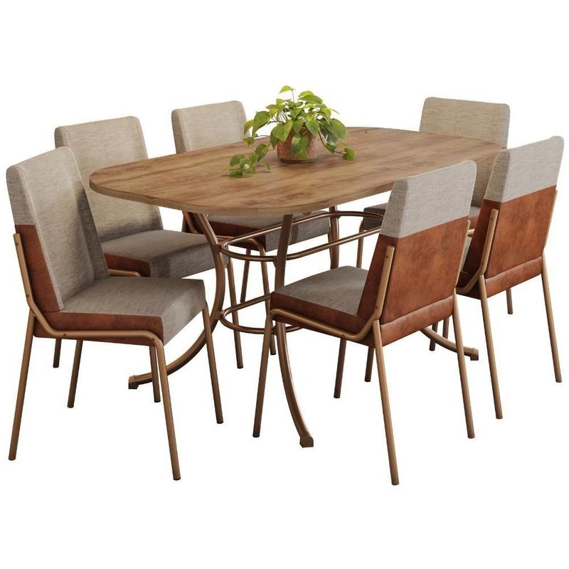 Conjunto Sala De Jantar 6 Cadeiras Manila Carraro Freijó Areia Rosê