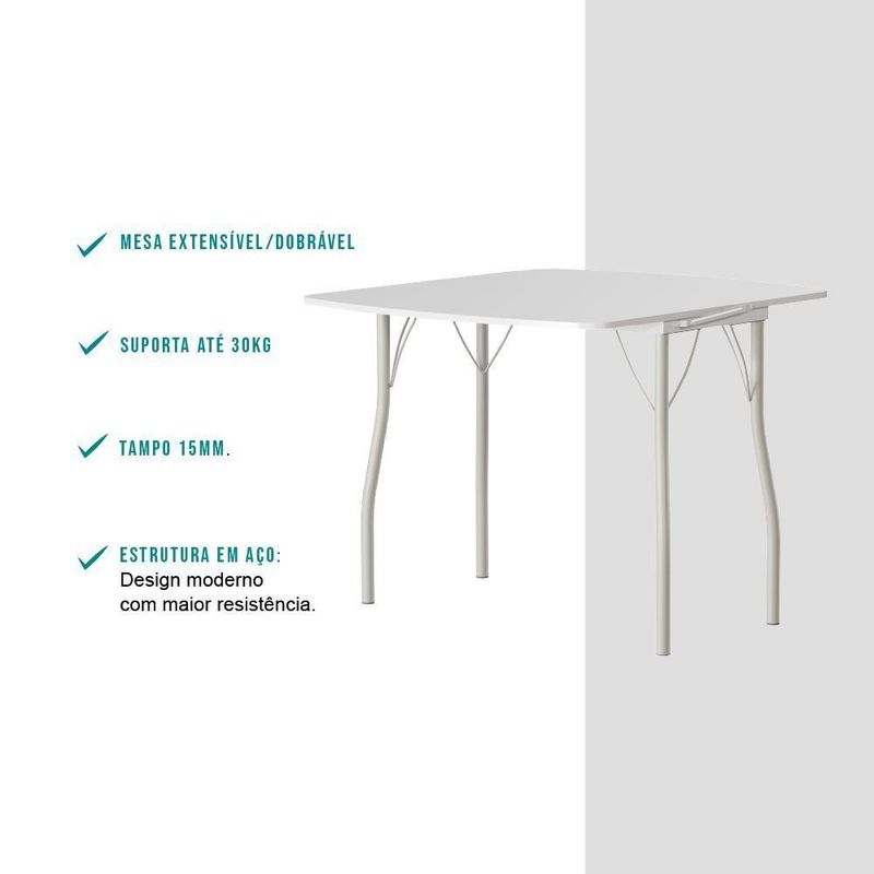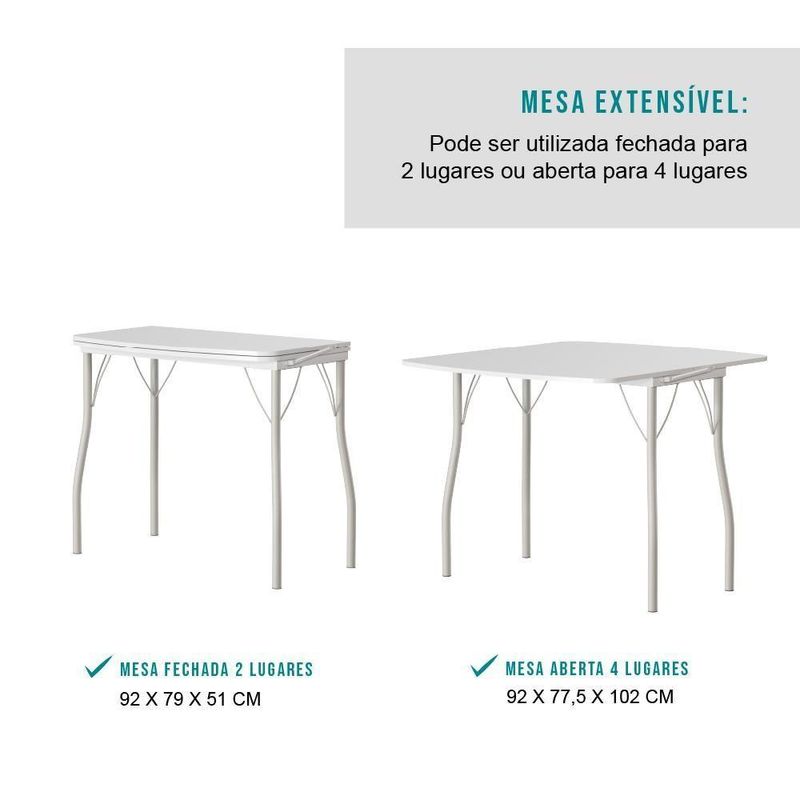 Medidas mesa aberta: Largura: 92 cm | Altura: 77,5 cm | Profundidade: 102 cm