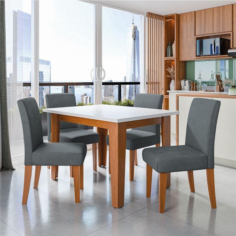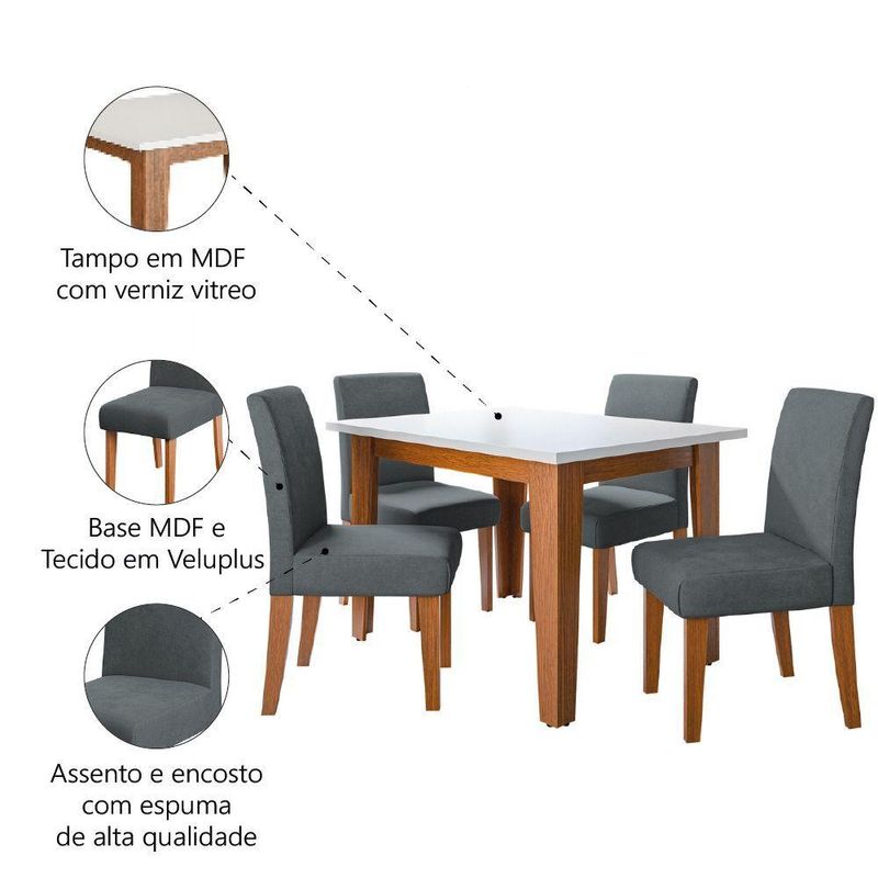 Conjunto Sala De Jantar Mesa Miami 1,20m 4 Cadeiras Trieste Dobuê Madeirado Grafite