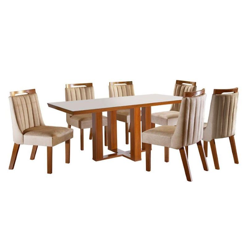 Conjunto Sala De Jantar Lottus Mesa Tampo Mdf E Vidro Com 6 Cadeiras Shopkasa Castanho/off White/bege