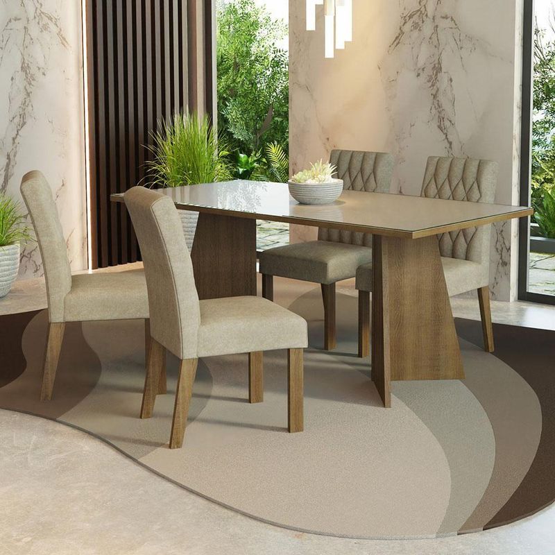 Conjunto Sala De Jantar Mesa Tampo De Vidro 4 Cadeiras Madesa Rustic/crema/imperial