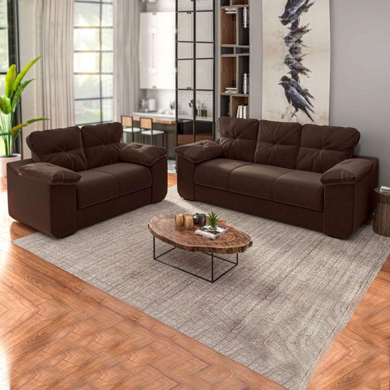 Conjunto Sofá 2 E 3 Lugares 1025 Veludo Tabaco Mamflex Tabaco