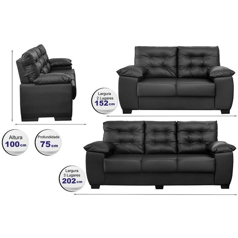 Conjunto Sofá Luxemburgo 3 E 2 Lugares 1,52m E 2,02m Courino Preto
