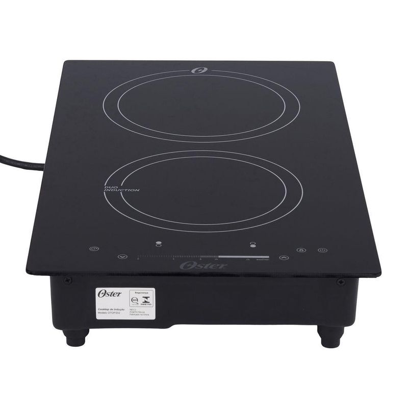 Descrição do ProdutoComidas deliciosas e sua cozinha com um toque de modernidade.Este cooktop é incrível: você vai amar. Fácil de limpar, com vidro cerâmico e como todo Oster, tem um design moderno e sofisticado. Além disso, ele é 2 em 1: de embutir ou portátil. Você escolhe como quer usá-lo.14 Níveis de potência: Selecione o nível que deseja para realizar o preparo, desde descongelar até ferver ou fritar alimentos.2 em 1: O cooktop por indução de 2 bocas Oster tem a versatilidade que você procura: pode ser utilizado no formato embutido ou ainda sob a bancada, como um produto portátil. E se você precisar, pode utilizá-lo em áreas externas ou sobre outras superfícies.Função Booster: Aumenta a potência para preparos ainda mais rápidos. São 2 zonas de indução com controles de potência individuais.Painel Touch Screen com Controle Slide Touch: Mais rápido e preciso para você controlar a temperatura com o movimento de deslizar.Vidro Cerâmico: Material de fácil limpeza e resistente ao calor menos tempo limpando.Função timer: Função timer de até 99 minutos para preparos longos e no tempo certo.Trava de segurança: Quando acionada, impede alterações no controle, o que garante a continuidade das funções durante o preparo.Você sabe o que é e como funciona um cooktop por indução?Os cooktops por indução funcionam á base de campo magnético. Só aumentam a temperatura se estiverem em contato com uma panela específica. Recomenda-se as de fundo de ferro fundido, aço multicamadas ou inox, e não as de vidro, barro e alumínio. Dica: os cooktops por indução são elétricos. Portanto descartam o gás e trazem mais segurança e praticidade ao uso e a instalação.