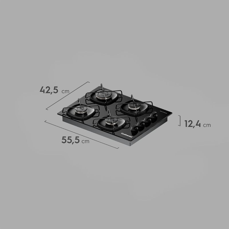 Experimente a qualidade Continental com o Cooktop 4 Bocas a Gás Continental Mesa de Vidro Preto com Acendimento Automático (KC4GR). Um produto durável e eficiente, feito para facilitar seu dia a dia.