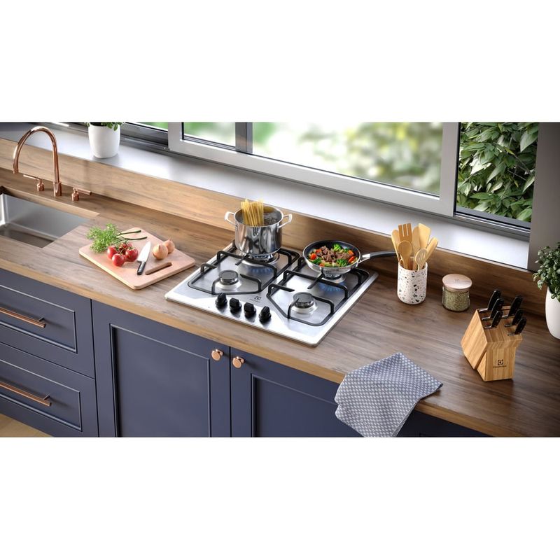 Enquanto isso, os Queimadores Selados dão maior estabilidade à chama, evitando que o fogo se apague. Com o Cooktop 4 Bocas Electrolux Gás Experience, você tem precisão e elegância em um aliado poderoso: a potência total de 9.300 W dos queimadores garante um cozimento rápido e eficiente, que acelera o preparo das receitas. Materiais e acabamentos resistentes conferem alta durabilidade e robustez ao produto.