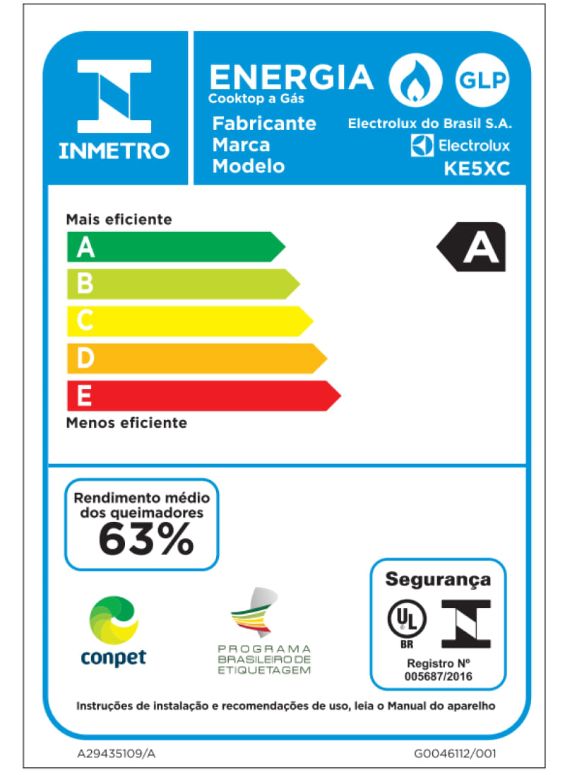 O Cooktop 5 Bocas Electrolux Gás Experience tem um desempenho classe A no consumo de energia (Inmetro) e é ideal para você preparar suas refeições com mais eficiência e economia.