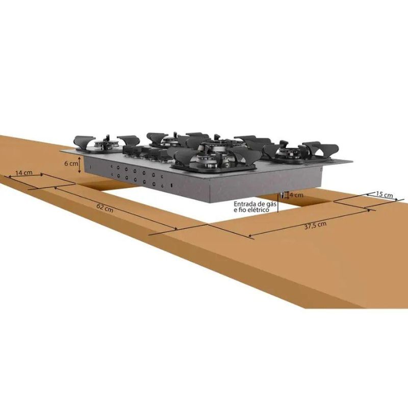 Design Moderno e Funcional: Com acabamento branco elegante e layout de cinco bocas, combina estilo e praticidade, otimizando o espaço na cozinha.