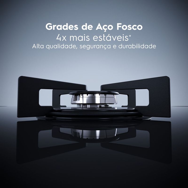 O Cooktop 5 Bocas Gás Electrolux Mesa de Vidro Efficient Tripla Chama e Grade Aço Fosco (KE5GT) traz modernidade e eficiência para sua cozinha.