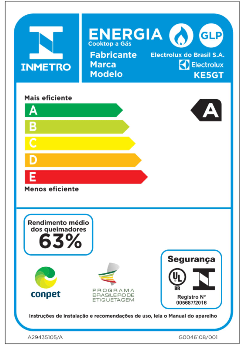 O Cooktop 5 Bocas Gás Electrolux Mesa de Vidro Efficient Tripla Chama e Grade Aço Fosco (KE5GT) tem um desempenho classe A no consumo de energia (Inmetro) e é ideal para você preparar suas refeições com mais eficiência e economia.