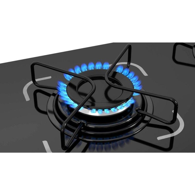 O Cooktop 5 Bocas Itatiaia Preto A Gás Em Aço Inox E Mesa Vidro Temperado Essencial Bivolt une design moderno, segurança e eficiência para transformar sua cozinha em um ambiente ainda mais funcional e elegante. Produzido com mesa de vidro temperado de 6mm na cor branca, ele proporciona resistência e sofisticação ao ambiente. Seu acendimento automático e trempes em arame redondo com chapa de aço garantem praticidade no dia a dia, enquanto os manípulos injetados e polidos trazem um toque de acabamento refinado.Compatível com todos os tipos de panelas, exceto barro, o cooktop oferece alto rendimento e eficiência A, sendo ideal para quem busca performance com economia. Com funcionamento a Gás GLP ou GN, possui queimadores potentes, incluindo uma chama rápida de 3,00 kW, perfeita para preparos mais exigentesEspecificações Técnicas: