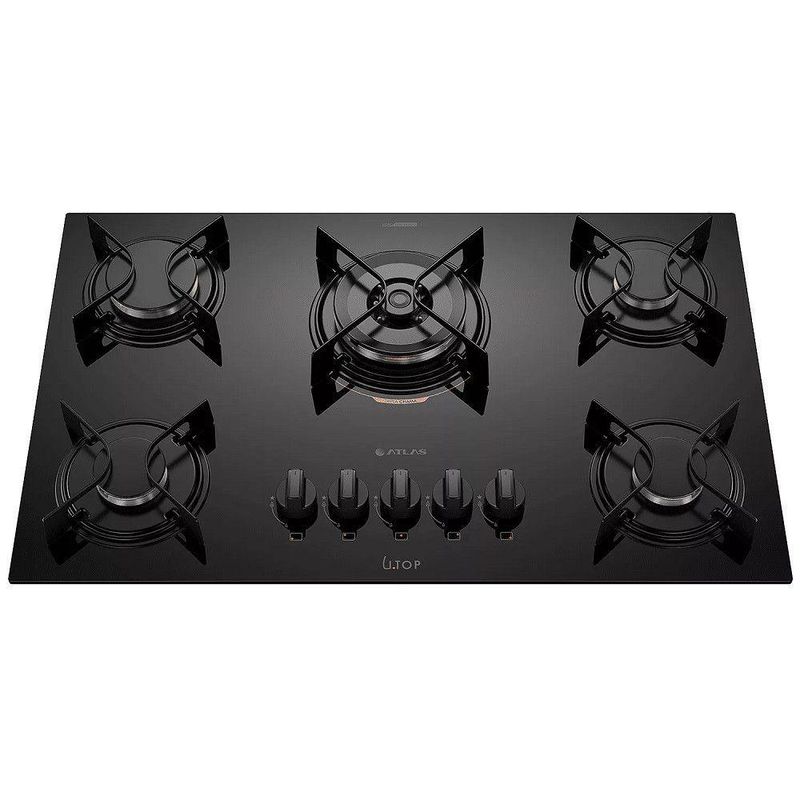 Cooktop 5 Bocas U Top Com Mesa De Vidro E Tripla Chama Atlas Preto Bivolt